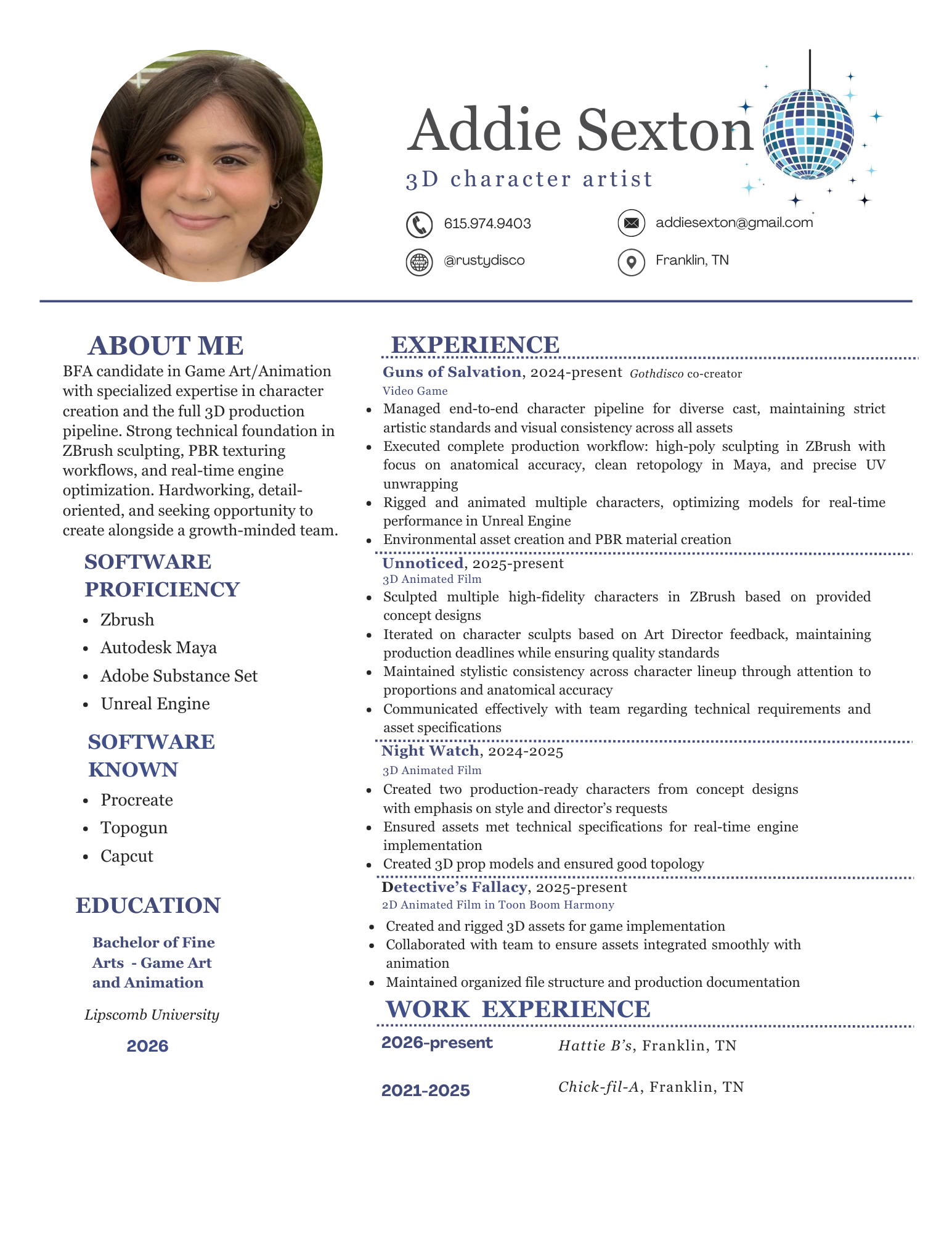 Addie Sexton is a Nashville-based 3D Character Artist, specializing in stylized and story driven design.
